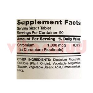 PICOLINATO DE CROMO 1000MCG 90 TABLETAS