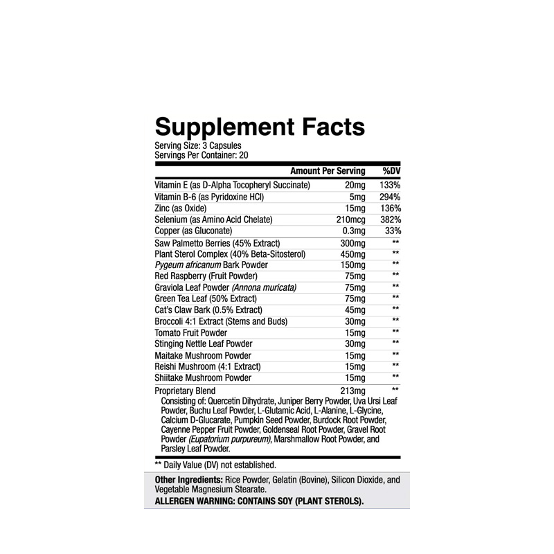 Nature’s Craft Prostate Support es una mezcla de nutrientes extraídos de la semilla de auyama, arándanos Juniper, ácido glutámico, L-alanina, burdok, glicina, calcio, D-glutarato, cayena, goldenseal, marshmallow, raíz de gravel (útil para la salud del tracto urinario) y perejil.