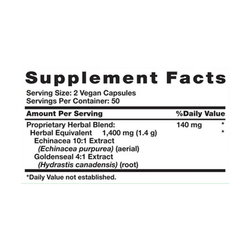 Echinacea + Goldenseal es la combinación perfecta para combatir catarros, virus, inflamaciones, heridas y otras condiciones.