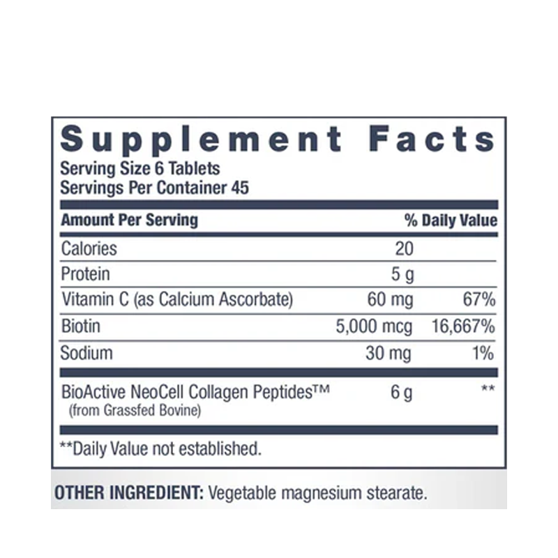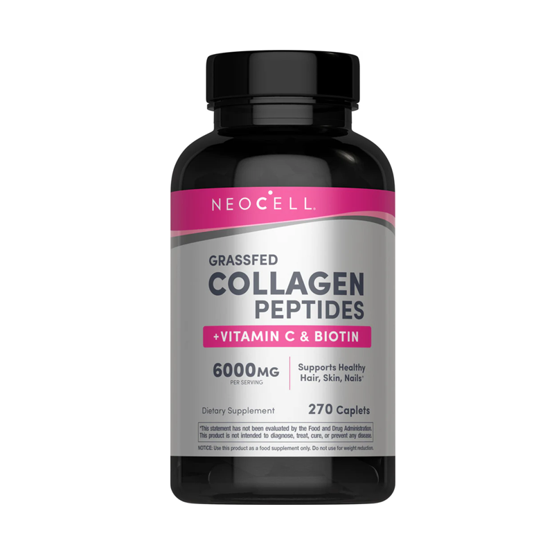 Neocell Collagen Peptides es elaborado con colágeno de ganado alimentado con grama natural sin uso de pesticidas para el soporte de piel, pelo y uñas.