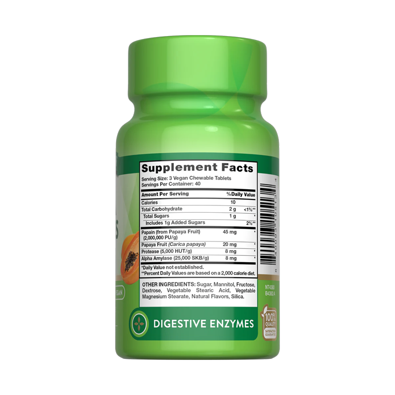 Nature’s Truth Papaya Enzyme masticable contiene en 2 cápsulas: