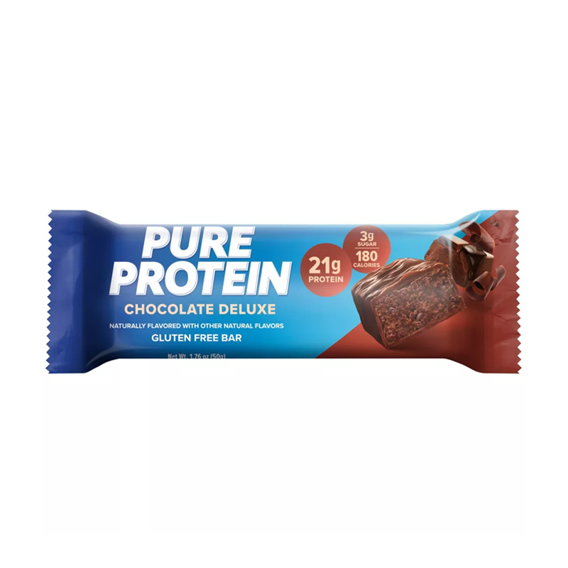 Pure Protein nos presenta las barras de proteína en deliciosos sabores, elaboradas con proteina de suero de leche aislada y de concentrado, colágeno hidrolizado, harina de mantequilla de maní parcialmente desgrasada, glicerina, maltitol, proteina de soya, aceite de maní