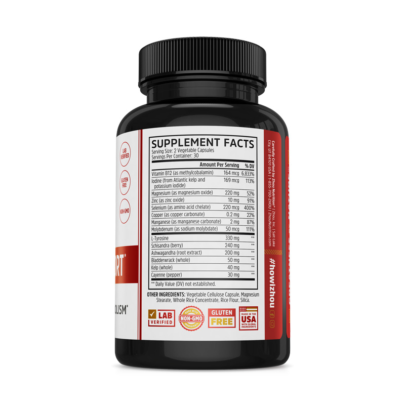 Zhou Thyroid Support es una fórmula que contiene todos los nutrientes necesarios para mantener las glándulas tiroides regulando sus funciones de manera efectiva.